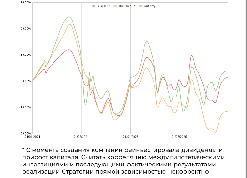 С 2024 г. стратегия принесла клиентам 27,92% прибыли (10,54% годовых), а индекс Московской биржи полной доходности нетто, с учетом дивидендов и уплаченных инвестором налогов (MCFTRR) показал результат 1,48% (0,74% годовых).